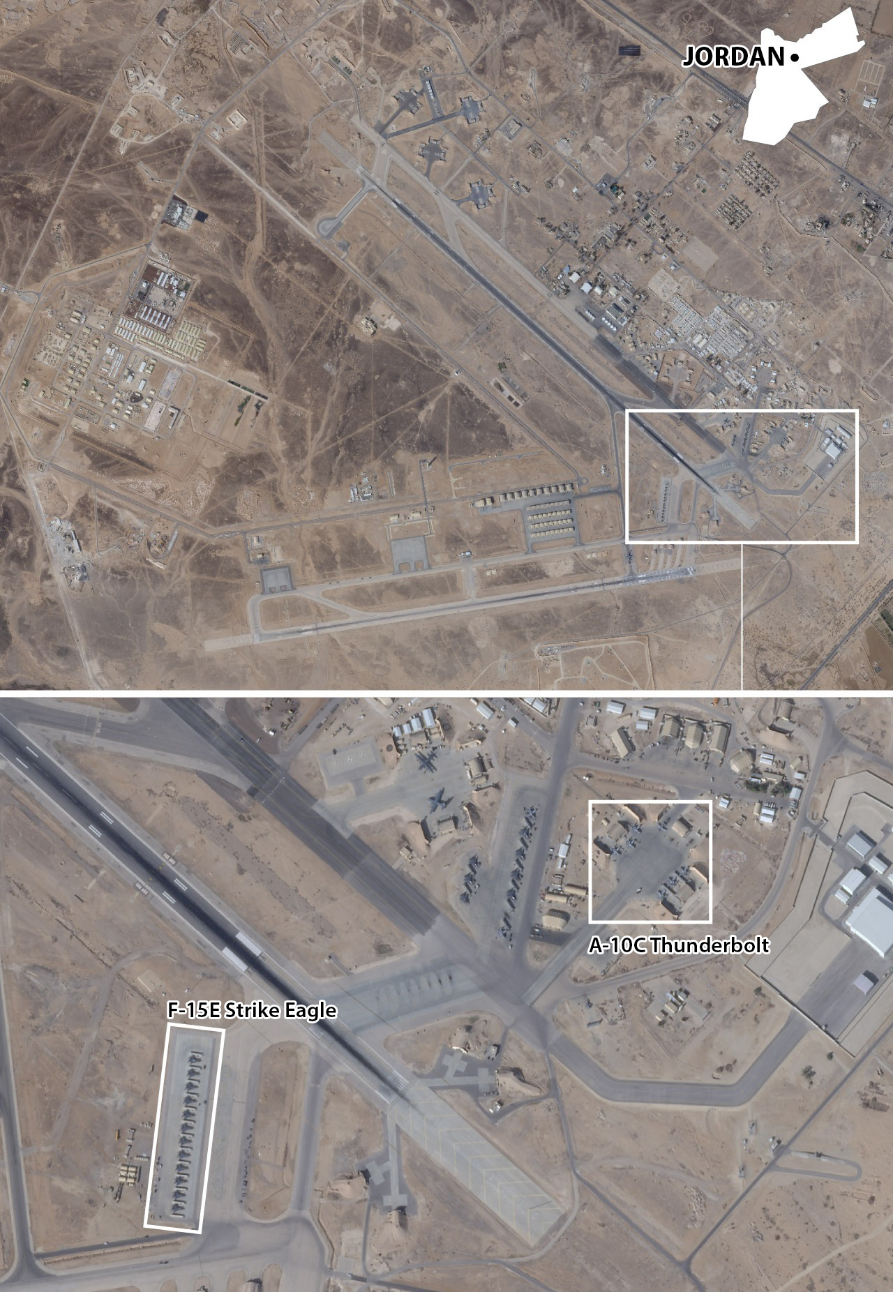 US F-15E fighters and A-10C attack aircraft at a base in Jordan. Photo: Washington Post |