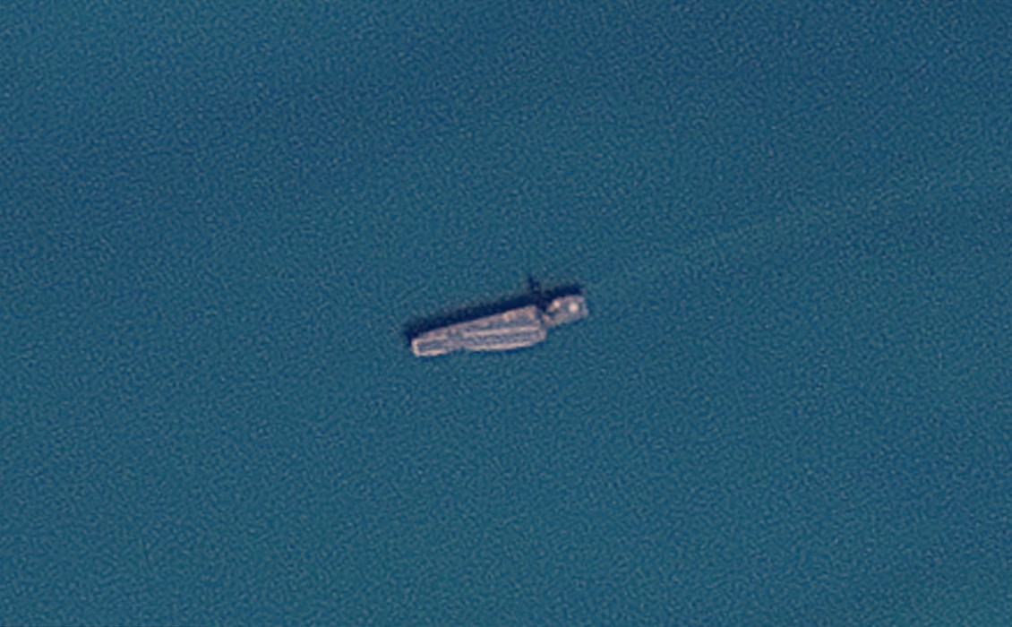 Satellite image of the drone carrier Shahid Bagheri in the Strait of Hormuz on 31/1. Photo: Planet Labs |