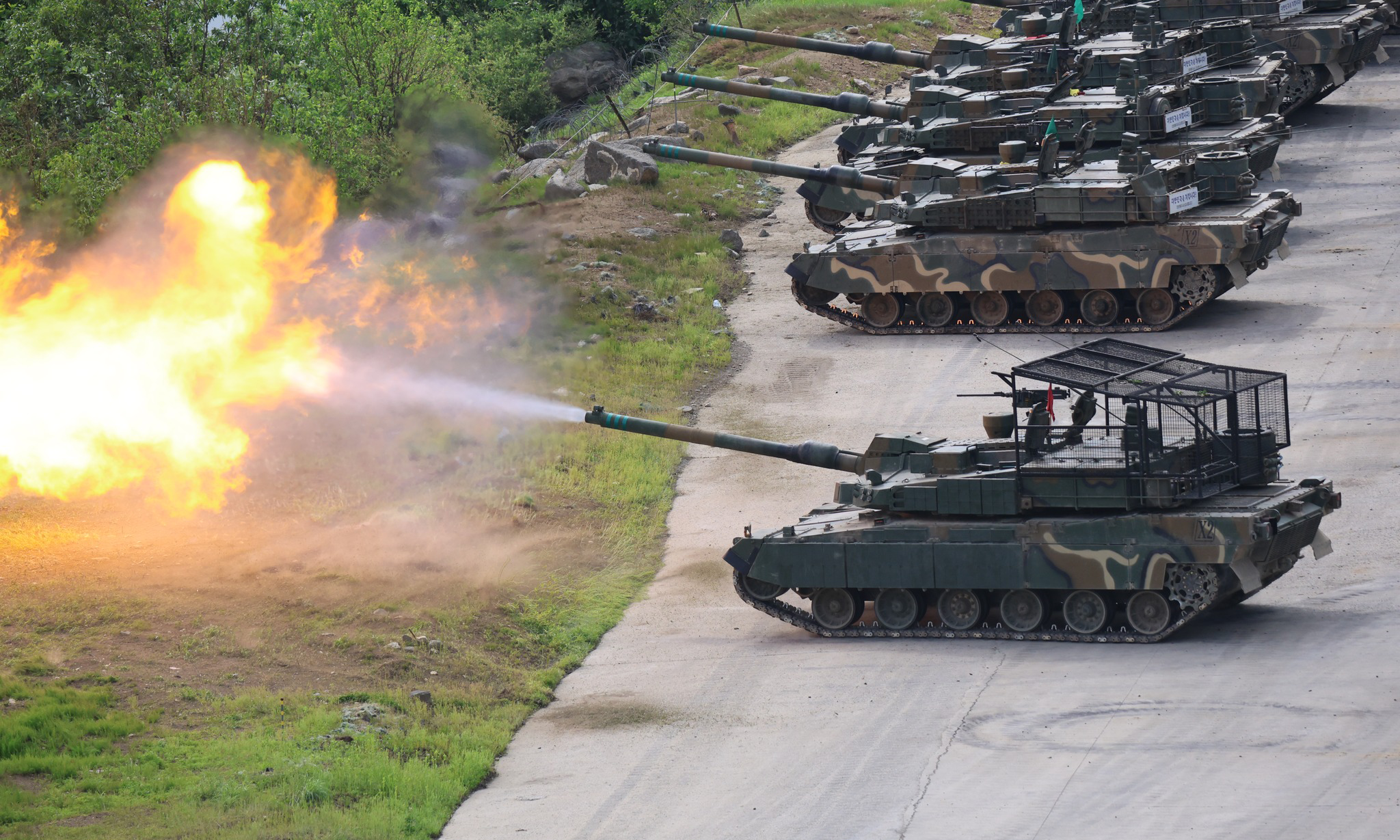 South Korean K2 tank fitted with cage armor firing in a photo posted on 22/12. Photo: Facebook/Jonghoon Park