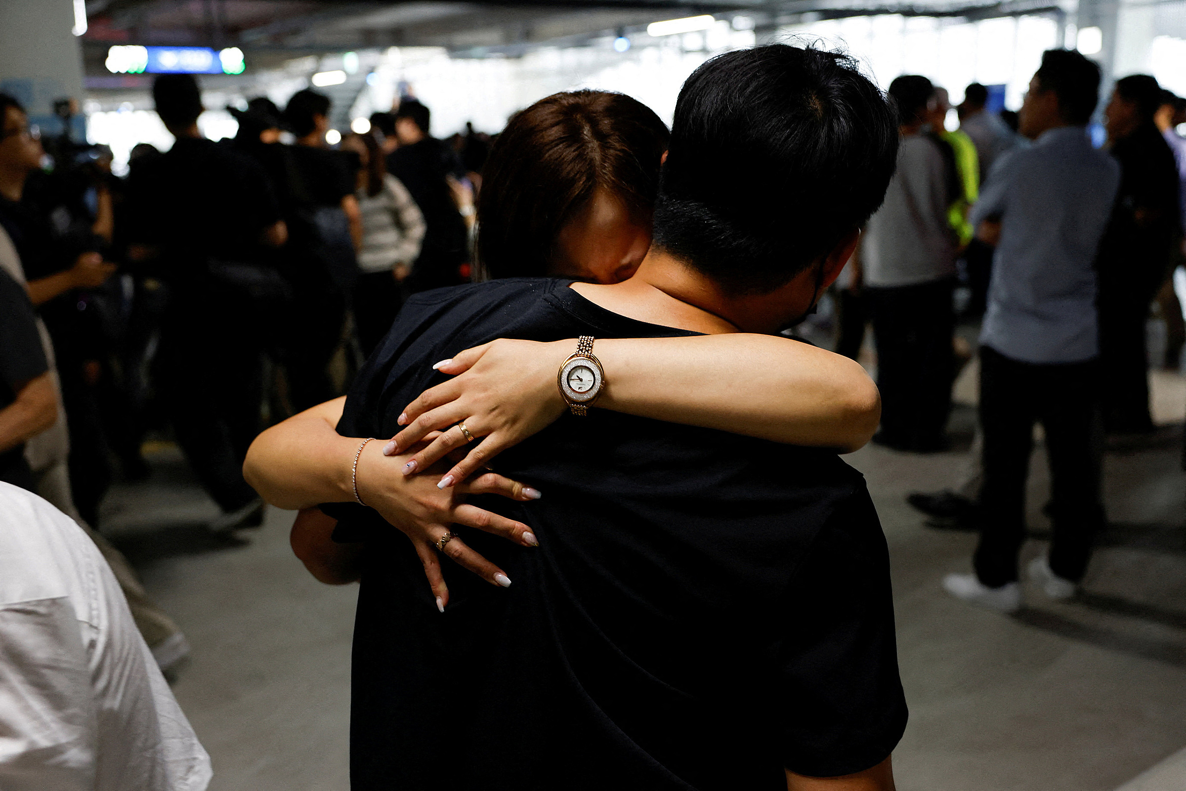 South Korean workers reunite with their families at Incheon airport on 12/9. Photo: Reuters