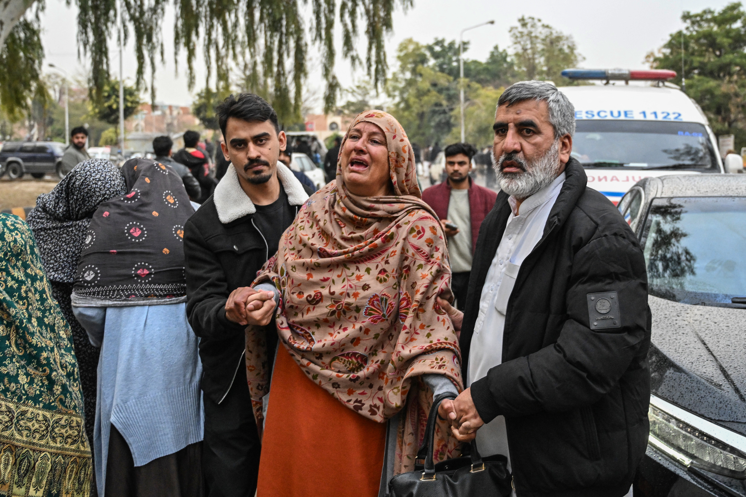 Relatives mourn victims killed in the Shiite mosque suicide bombing outside a hospital in Islamabad on 6/2. Photo: AFP
