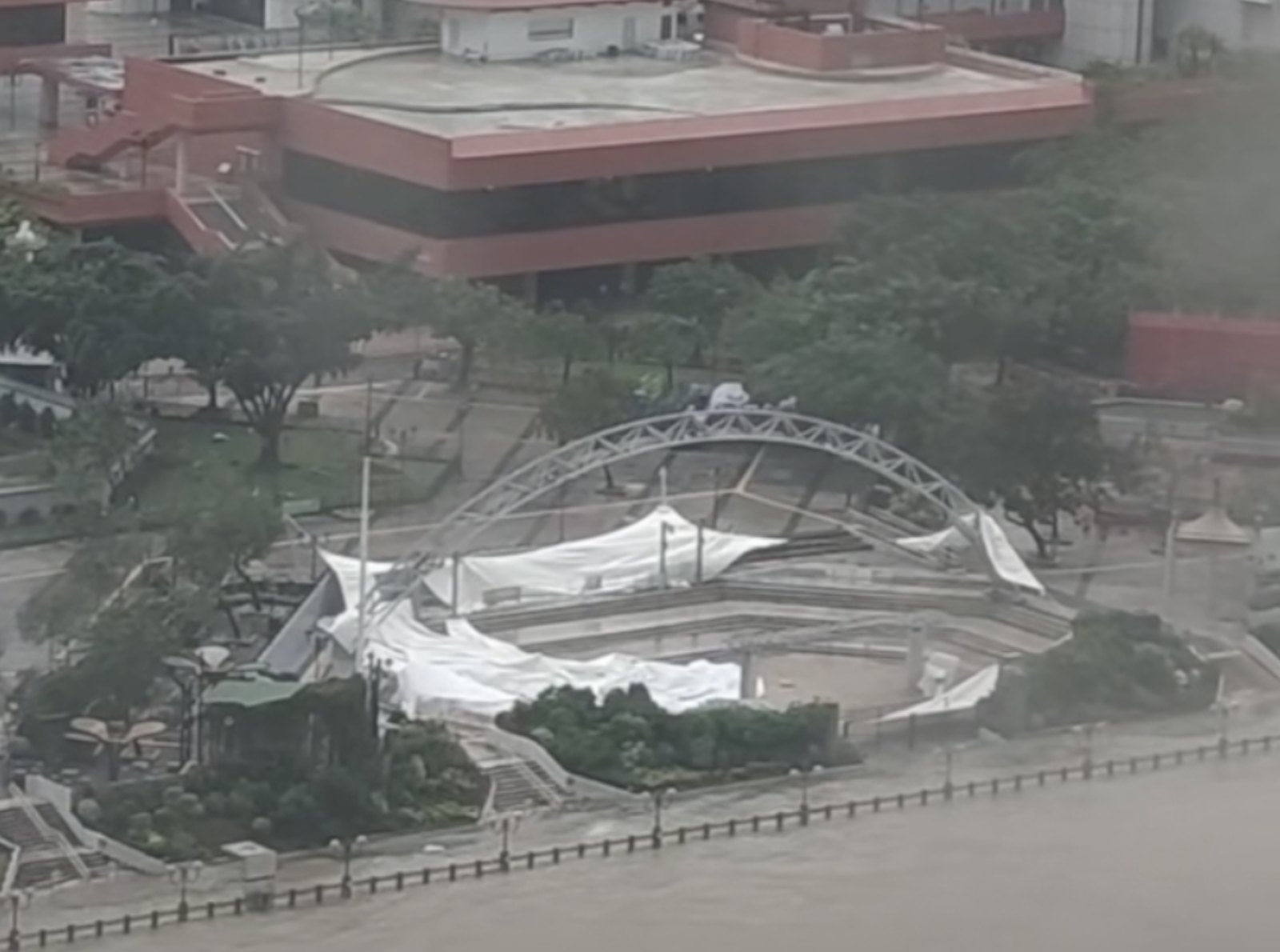 An outdoor stage at Sha Tin Park, Hong Kong, destroyed by typhoon Ragasa. Photo: DDHK |