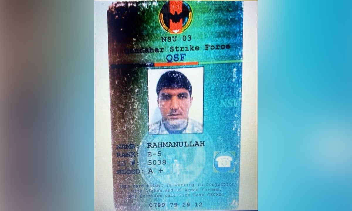 The military ID believed to belong to suspect Rahmanullah Lakanwal, in an image posted on 27/11. Photo: X/shellenberger |