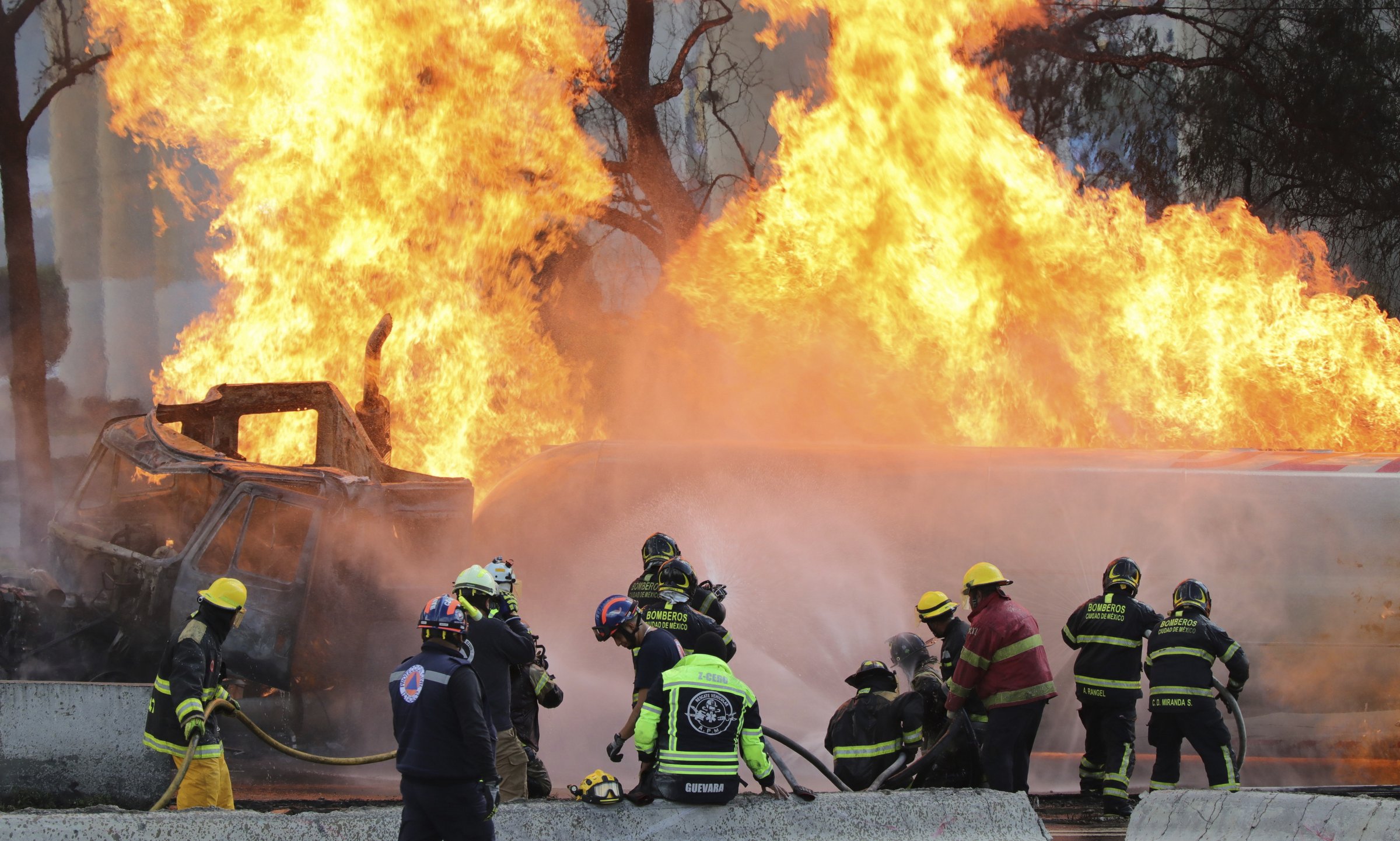 Firefighters battle the blaze at the scene of the tanker truck explosion in Mexico City on 10/9. Photo: AP