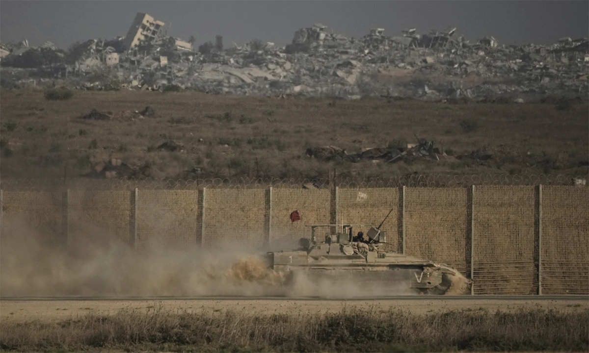 Israeli armored vehicles move along the border with the Gaza Strip on 16/9. Photo: AP