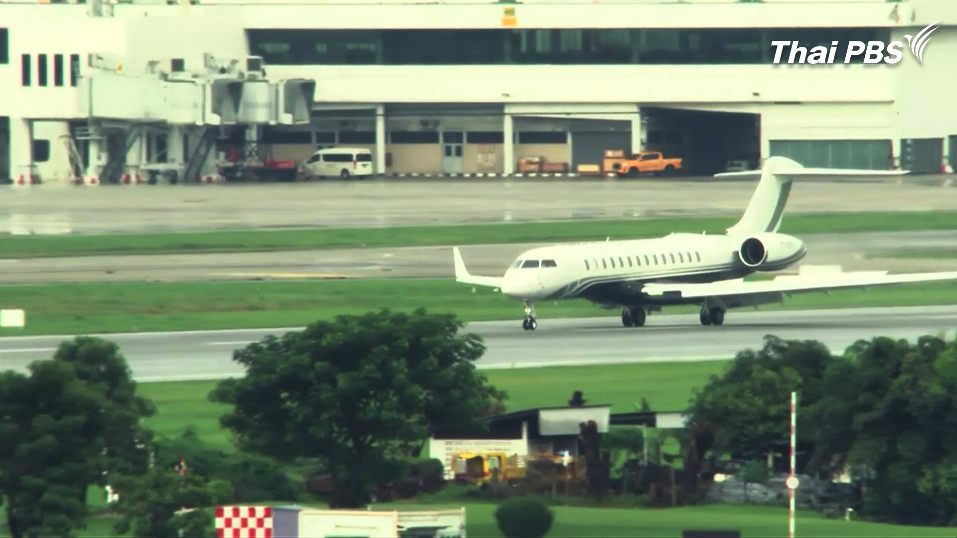 The plane carrying Thaksin at Don Mueang International Airport on the afternoon of 22/8. Photo: Thai PBS |