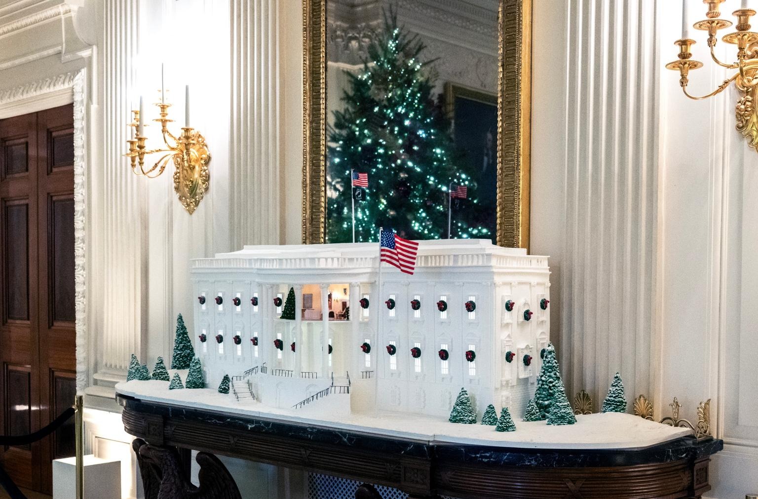 A 54 kg gingerbread White House model displayed in the East Room. Photo: CNP