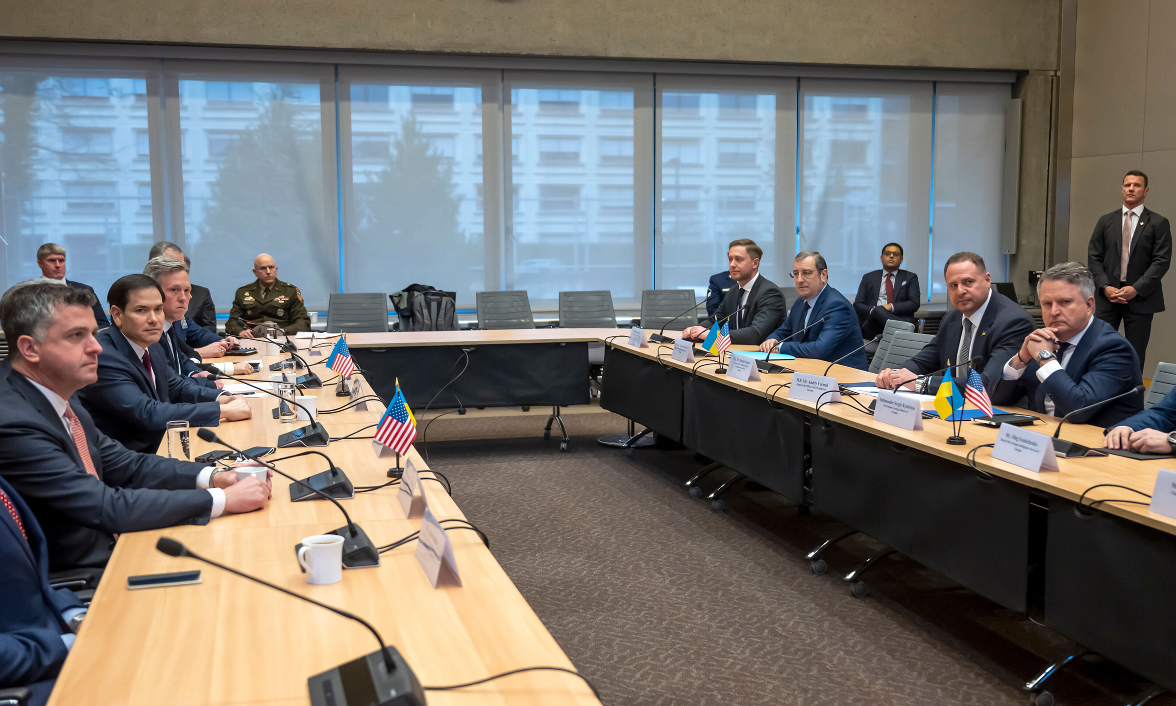 The US delegation (left) negotiates with the Ukrainian delegation in Geneva, Switzerland on 23/11. *Photo: AP* |