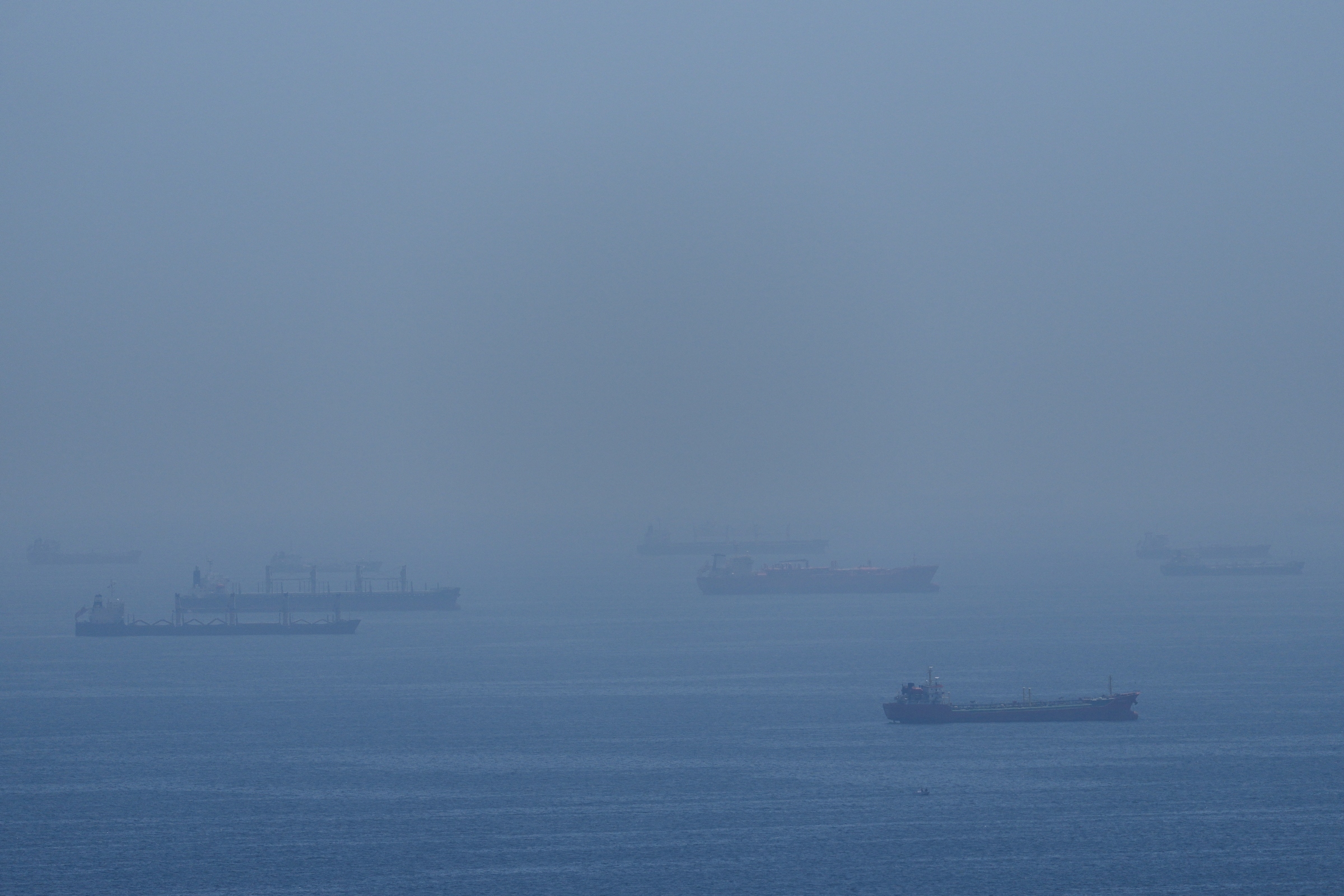 Vessels anchored in the Strait of Hormuz on 18/4. Photo: AP |