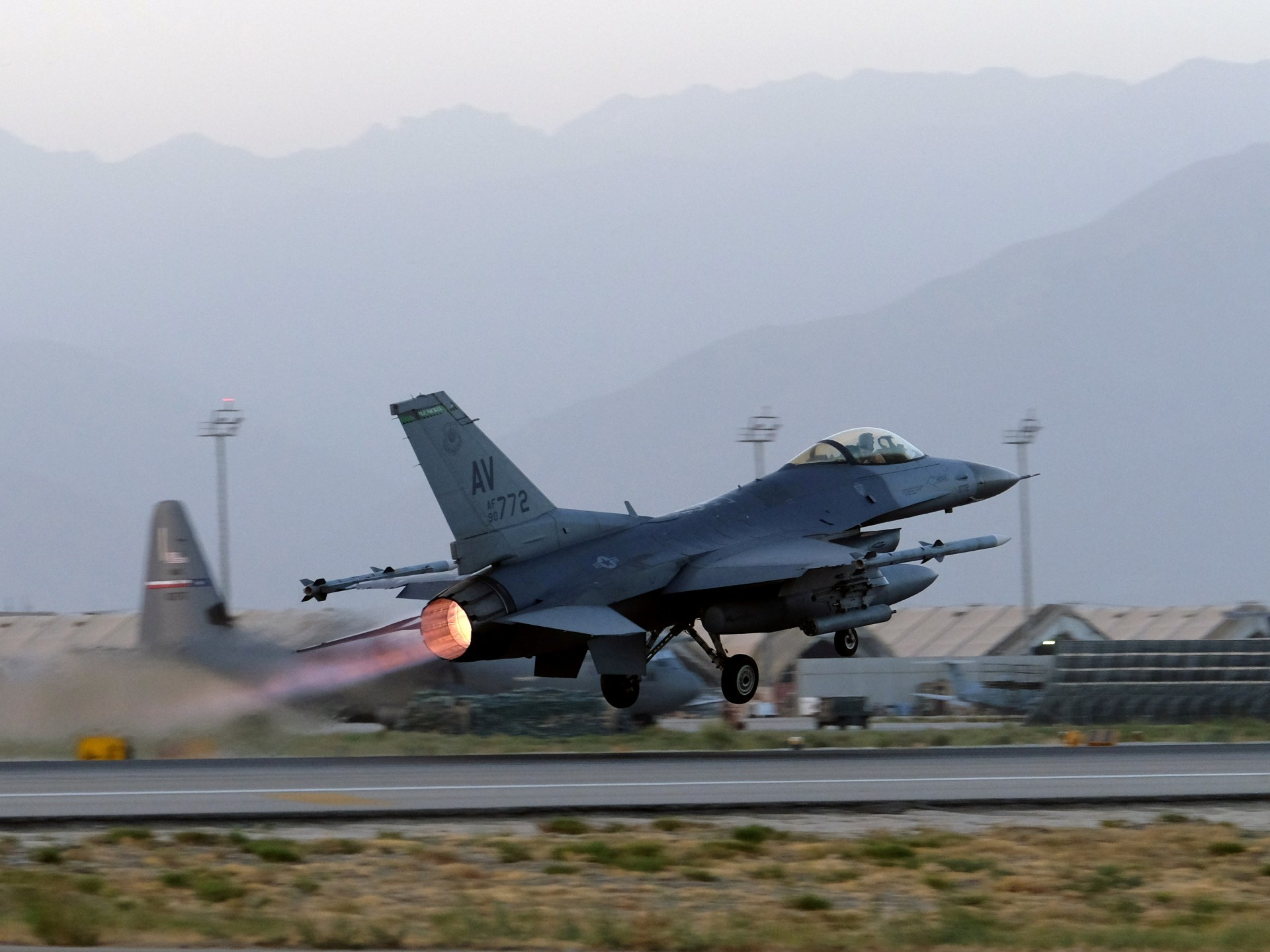 US F-16 fighter jets taking off from Bagram air base in 2017. Photo: Reuters