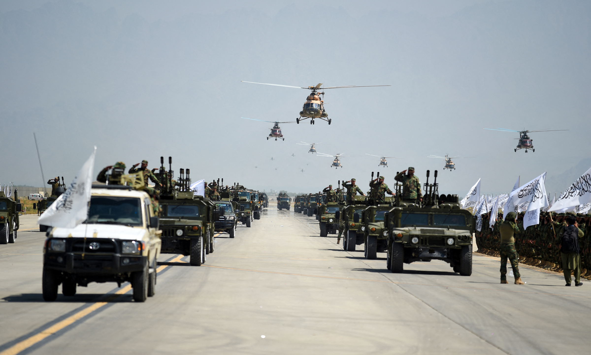 Taliban forces parade at Bagram air base in August 2024. Photo: AFP