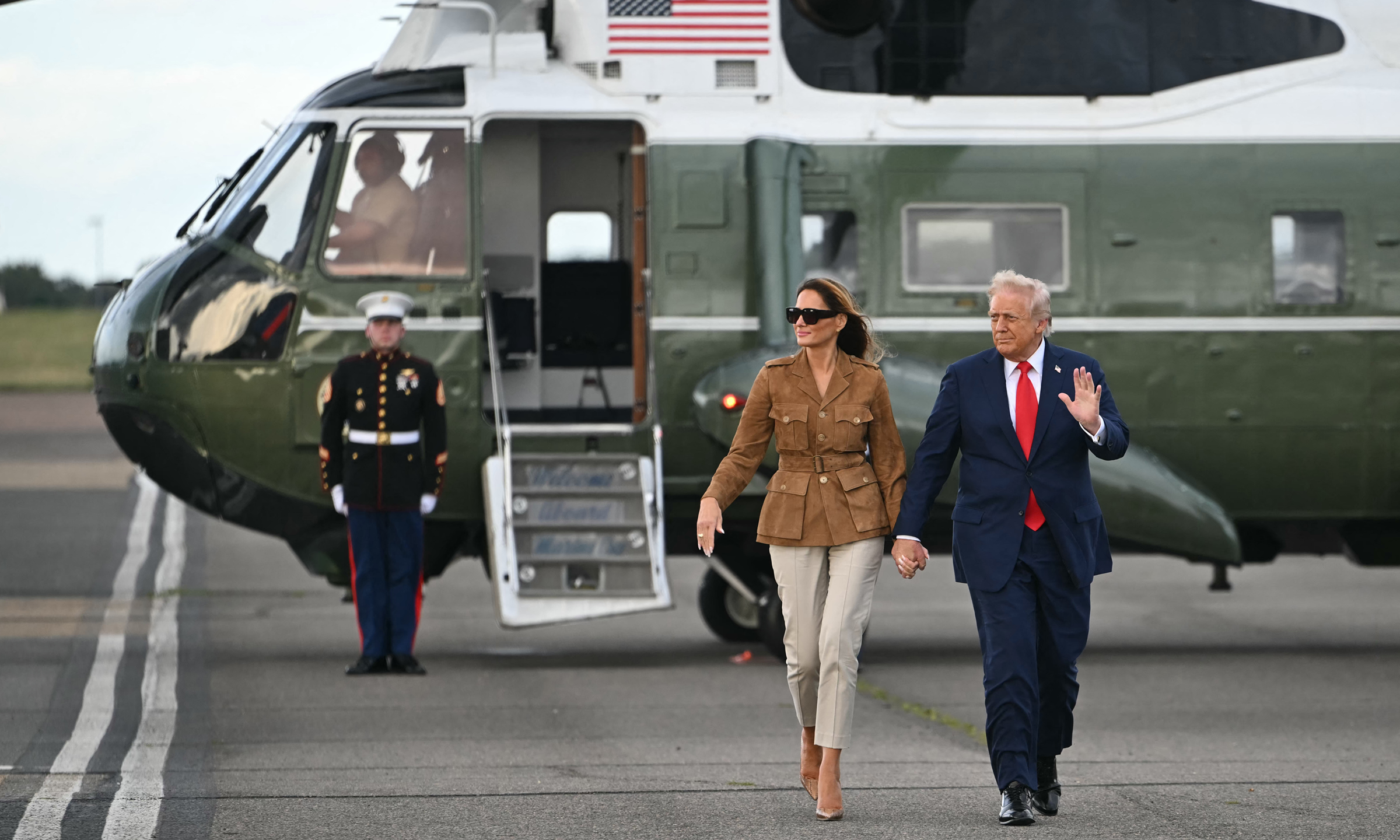 President Trump and the first lady leave the helicopter to board Air Force One at Stansted Airport on 18/9. Photo: AFP |