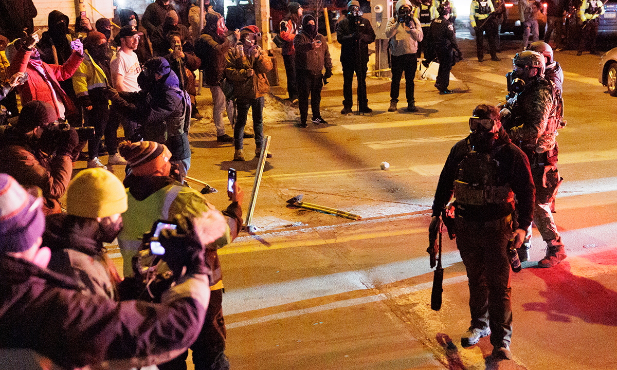 Protesters and law enforcement personnel in Minneapolis, Minnesota, US on 15/1. Photo: AFP |