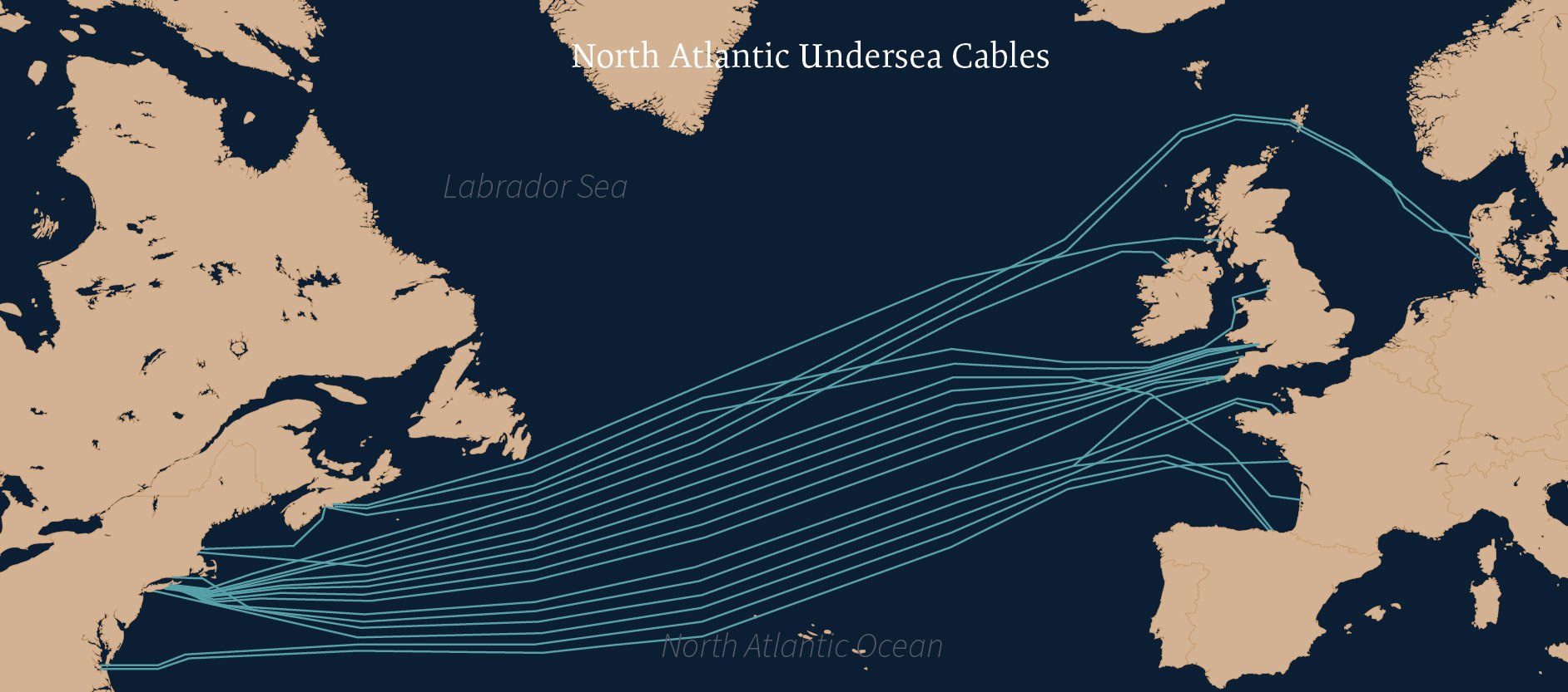 Subsea cable network connecting the US and Europe via the North Atlantic. Graphic: CSIS |