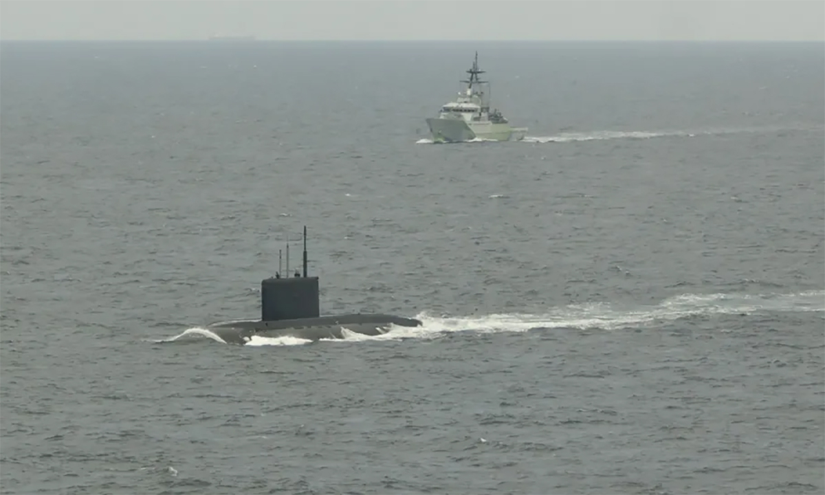 A British warship follows a Russian submarine in the English Channel in a photo released on 2/7. *Photo: Royal Navy* |