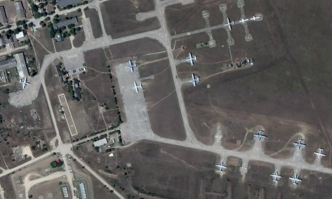 Be-12 seaplanes at Kacha air base in Crimea in satellite imagery from 7/2022. Image: Planet Labs |