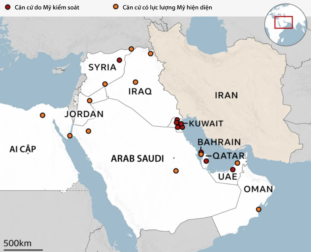 Military bases with US forces in the Middle East. Graphic: BBC |
