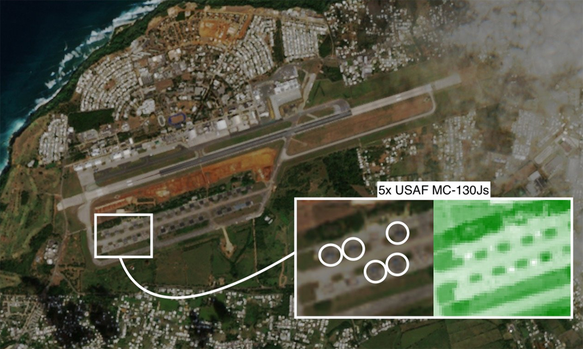 A US MC-130J transport aircraft at an airport in Puerto Rico, pictured on 22/12/2024. Photo: Copernicus Sentinel |