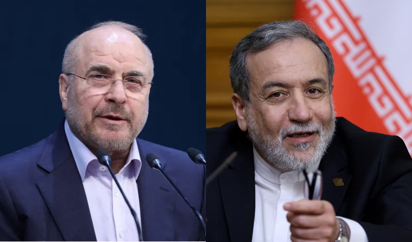 Iran’s parliament speaker Mohammad-Bagher Ghalibaf (left) and foreign minister Abbas Araghchi. *Reuters*.