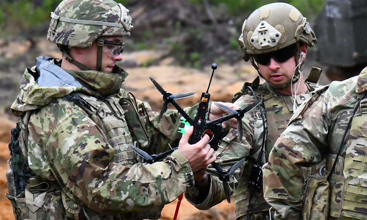 US soldiers practice with drones during an exercise at a training ground in Lithuania on 18/5. Photo: US Army |