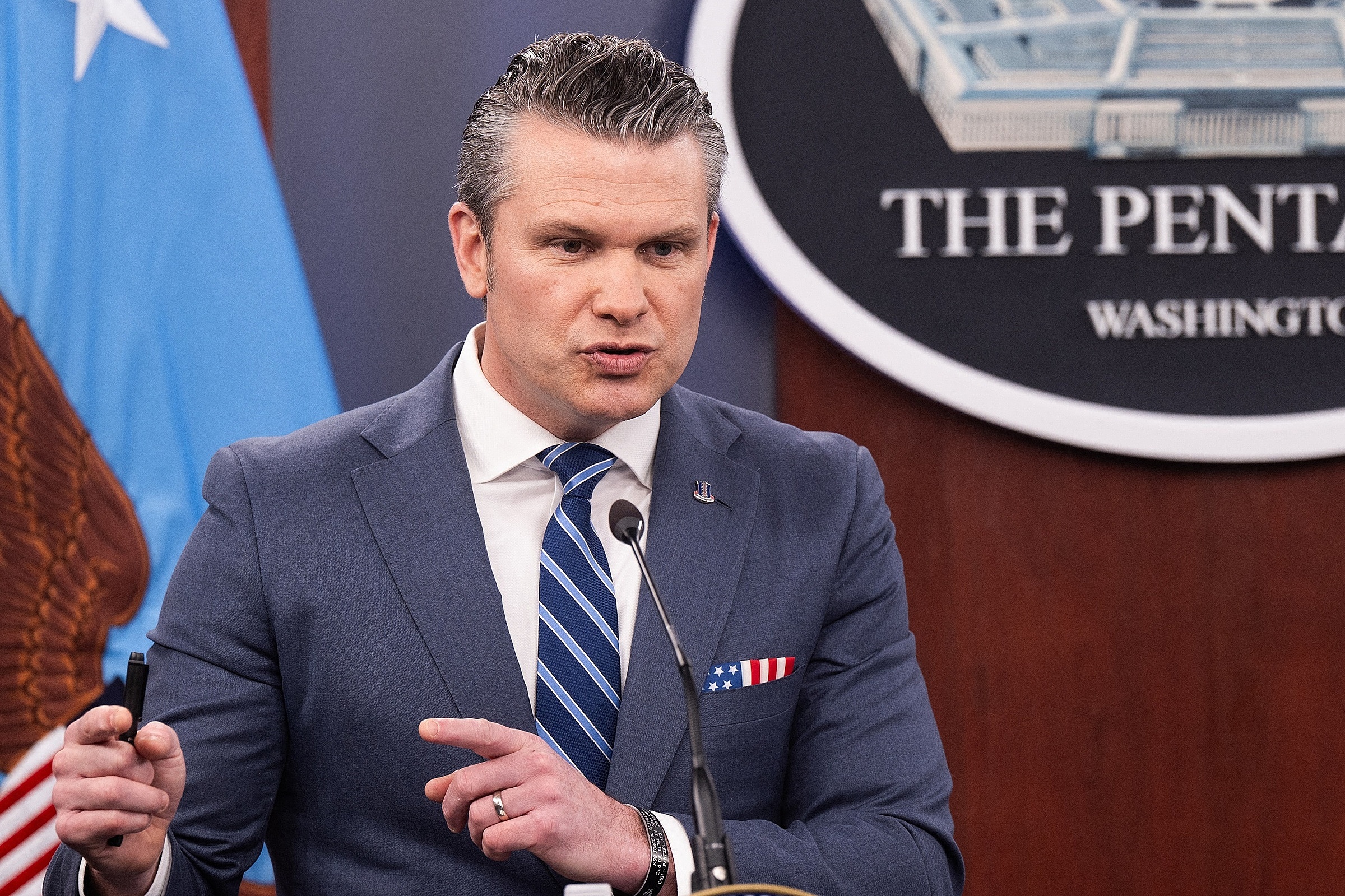 "Iran can choose a prosperous future, a golden bridge, and we hope they do so for their people. If Iran makes the wrong choice, they will face blockades and airstrikes targeting their infrastructure, electricity, and energy," Secretary of Defense Pete Hegseth stated today at a Pentagon press conference.
