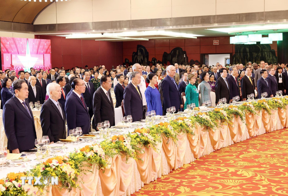 Party and State leaders held a gala banquet on 1/9 at the National Convention Center to commemorate the 80th anniversary of National Day. Party General Secretary To Lam, President Luong Cuong, and National Assembly Chairman Tran Thanh Man, along with former Party and State leaders, attended the event, according to the Vietnam News Agency (TTXVN).