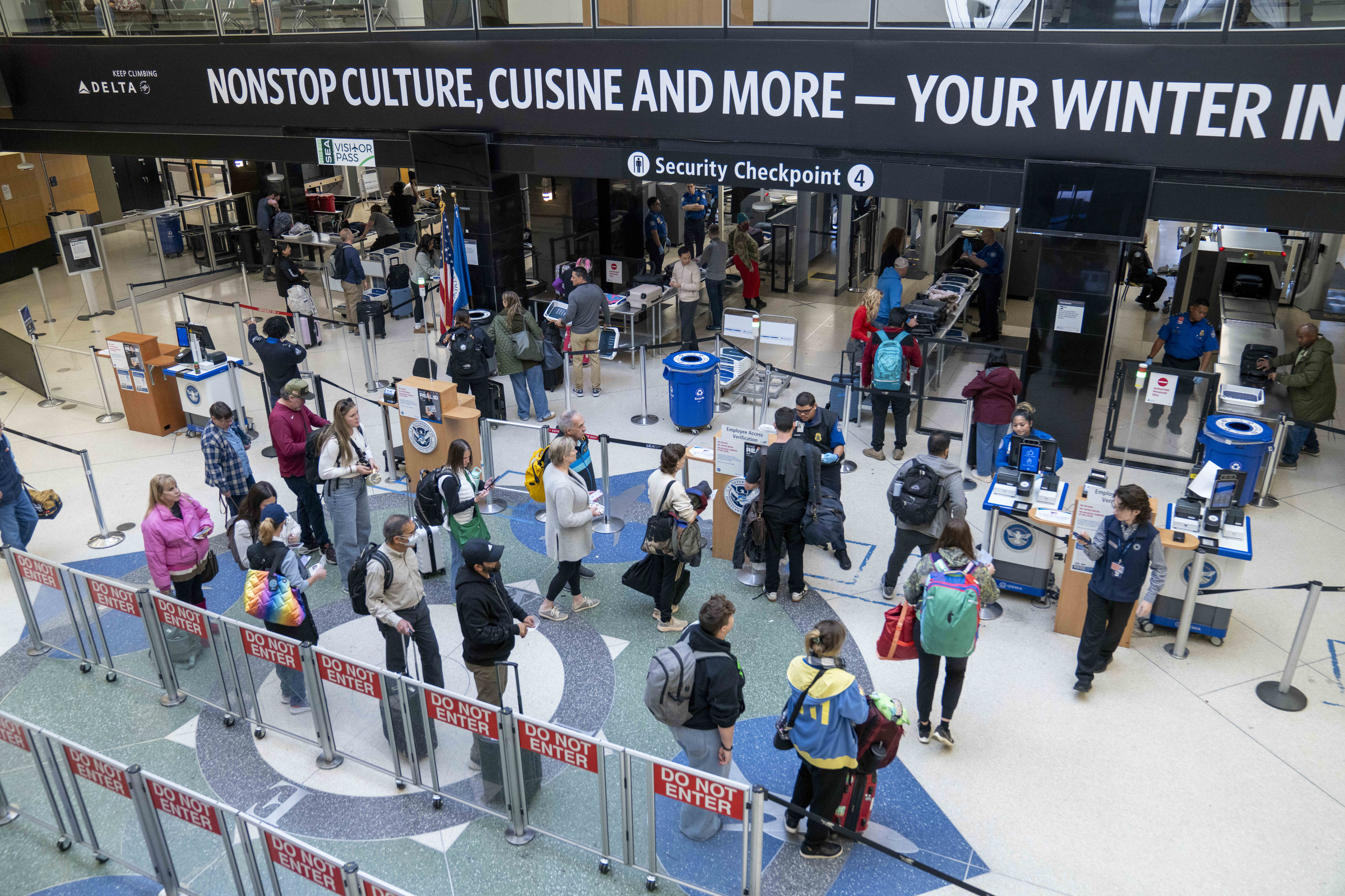 People queue for security checks at an airport in Washington, US, on 10/11. Photo: Reuters