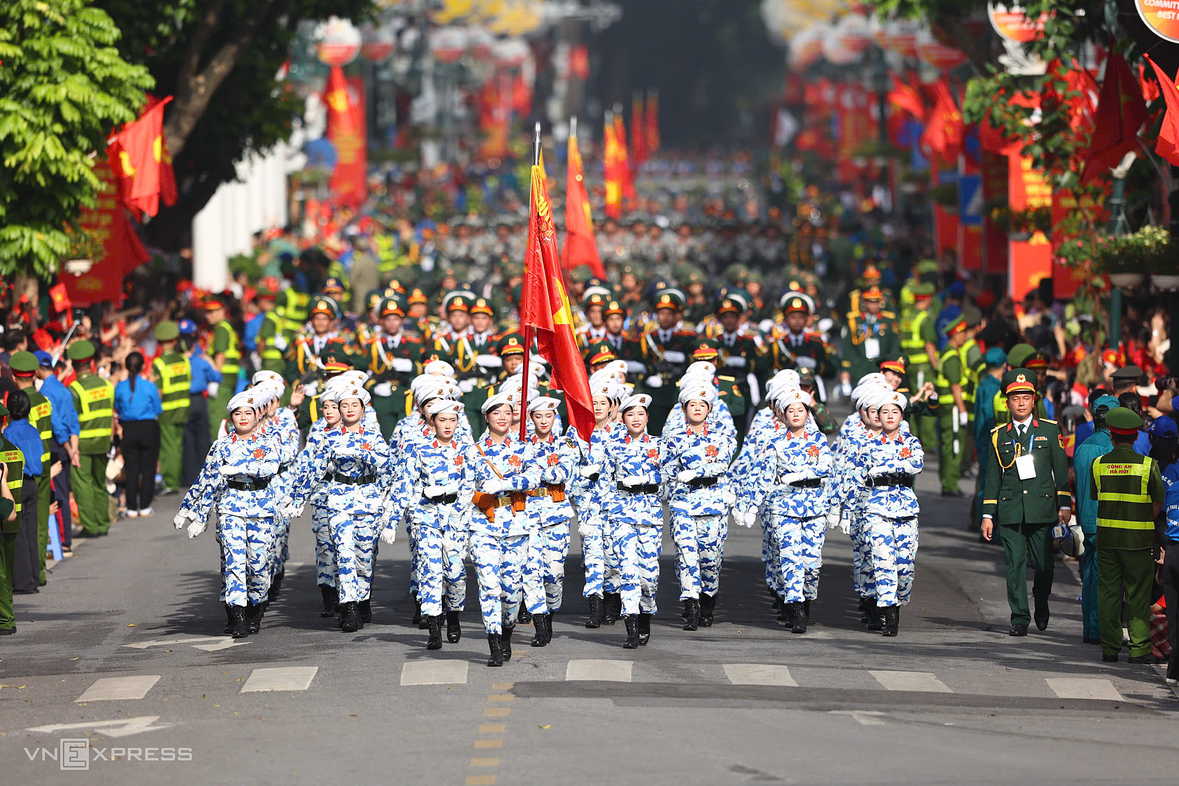 Female medical personnel participate in the parade on the morning of 2/9. Photo: Quynh Tran
