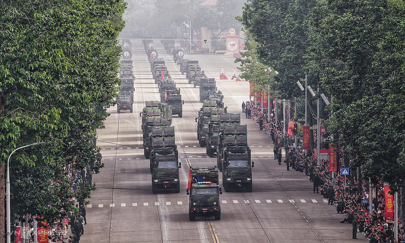 Truong Son missile complex developed by Vietnam, followed by air defense systems on Hung Vuong Street on 2/9. Photo: Ngoc Thanh